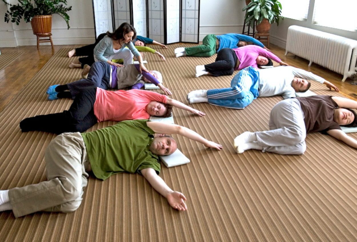 Done mostly lying down on a mat. Students follow verbal instructions that guide them through a sequence of gentle, structured movements with many variations.