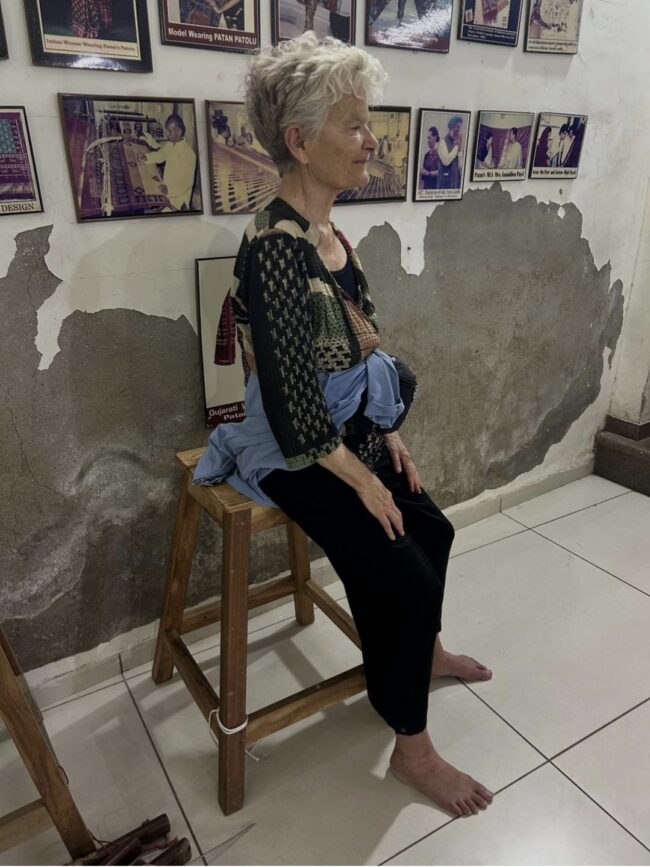 On a Moving Boundaries India field trip to the Patola Weavers’ workshop in Patan, where textiles are made by hand, I found this perfect perching height stool.